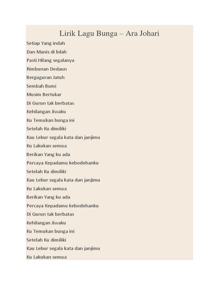 Bunga Lirik Ara Johari Youtube. Dalam rindu aku lemas. Lirik Lagu Sepanjang Zaman.
